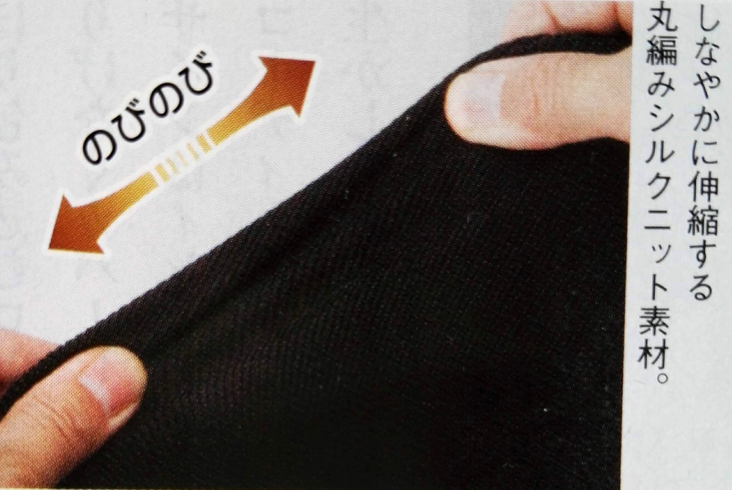 地模様織り込んだシルクニット素材を使用し、伸縮性よく、足と尻をフィットするタイプに仕上げました。ウェスト総ゴムタイプですが、ゴムはきつ過ぎず緩すぎず、楽にきられます。たっぷりした10分丈ですので、冬足首の冷えが守ってくれます。珍しい地模様ニット素材のズパッツですが、ファッション感覚で、チューニックのスパッツにはもちろん、寒さよけのズボン下にも助役、多様でご活躍、貴重な一着になります。