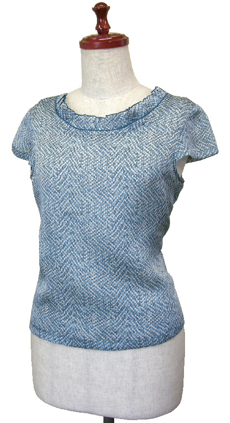 ターコイズ色ヘリンボーン柄アンサンブルー絹100%